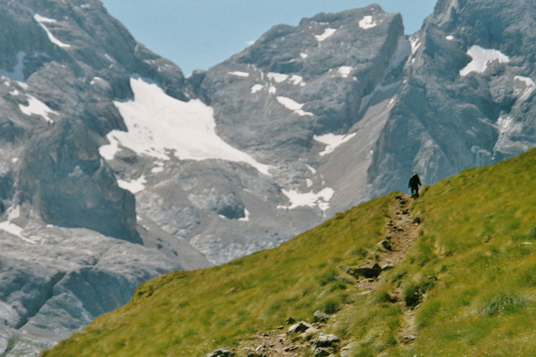Angekommen an der Porta Vescovo. Direkt gegenüber der gigantische Marmolada Gletscher
