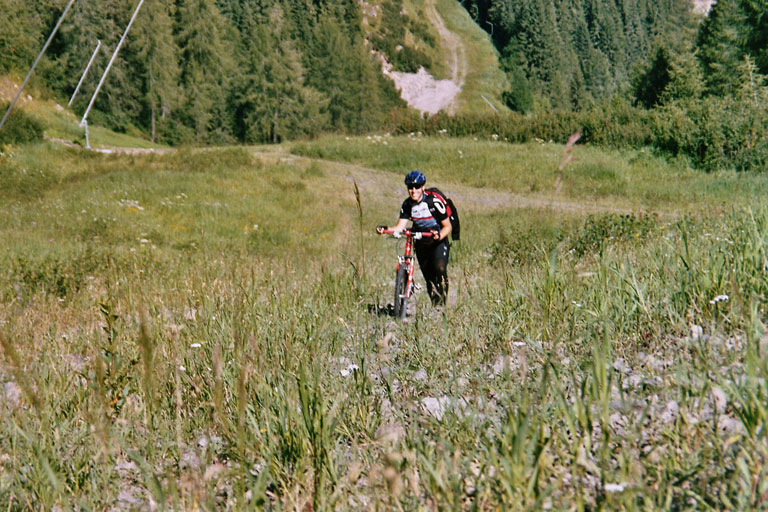 Von Arabba aus erstmal ein Stündchen den FIS-Hang hochschieben